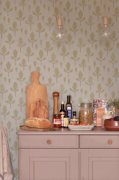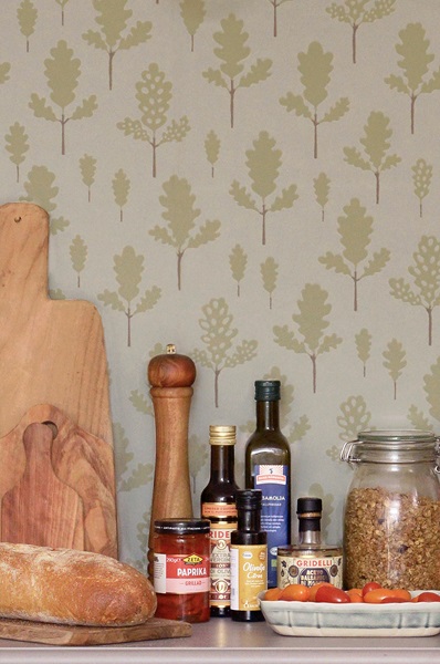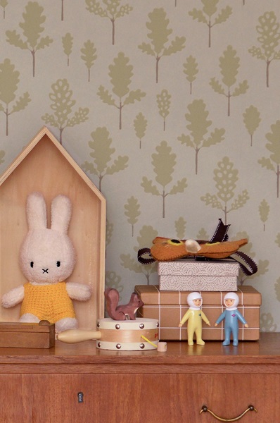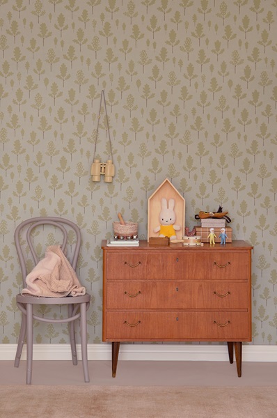 Majvillan, tapet till barnrummet Oak, greige blue