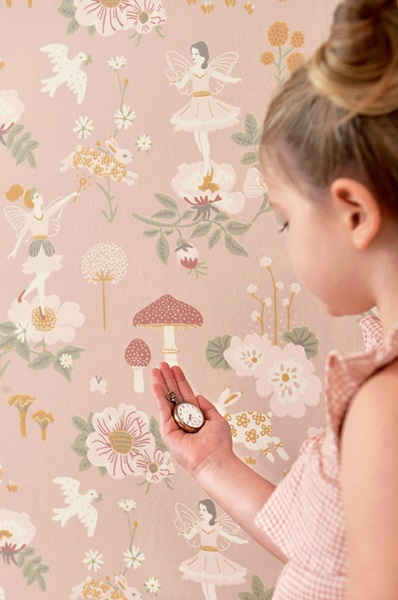 Majvillan, tapet till barnrummet Old garden, dusty rose