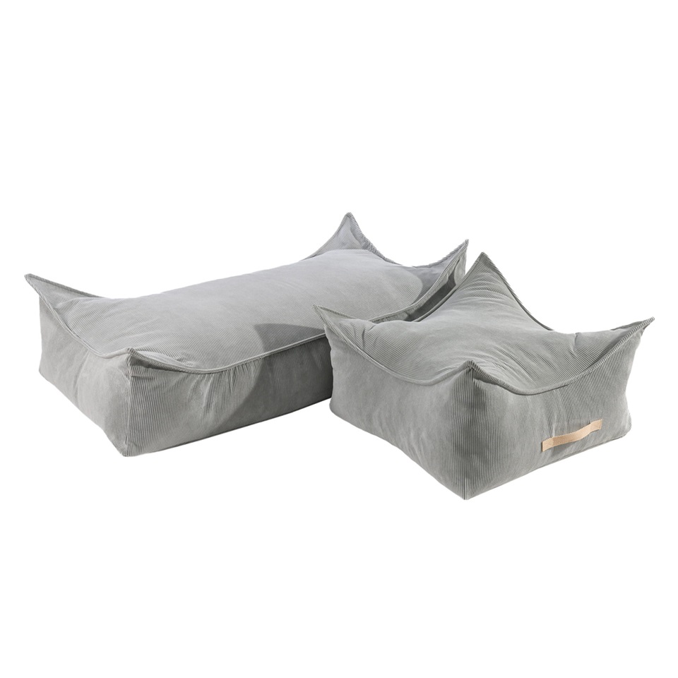 Sittpuffen är gjord av mjukt corduroy som adderar det lilla extra till mysfaktorn. Materialet är dessutom tåligt och tål hårda lekar.