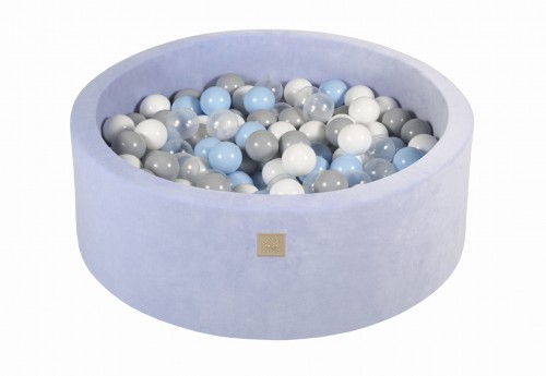 Meow, ljusblå velvet bollhav med 200 bollar, (grey, white, transparent, baby blue)