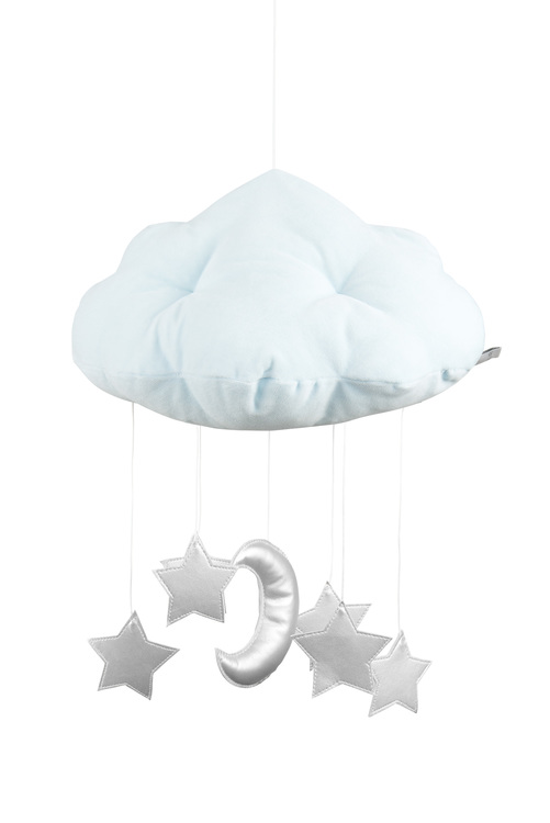 Alla barn älskar denna vackra och dekorativa mobil av fina moln. Tillverkad av mjuk bomullssammet med skimrande stjärnor och en måne. Charmig i sin enkelhet och idealisk för barnrumsinredningen. Mått: Bredd 26 cm, längd 37 cm och höjd 44 cm. Material: 100 % bomull och eko-läder. Fylllning: Polyesterbollar.Designer: Cotton & Sweets