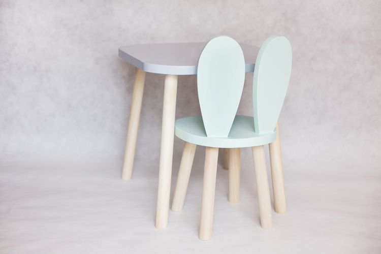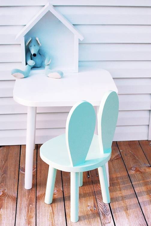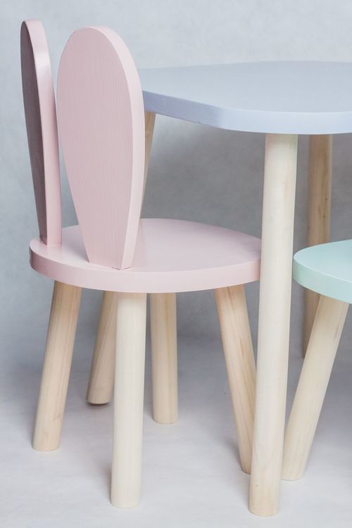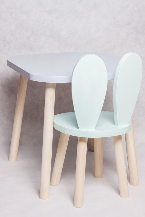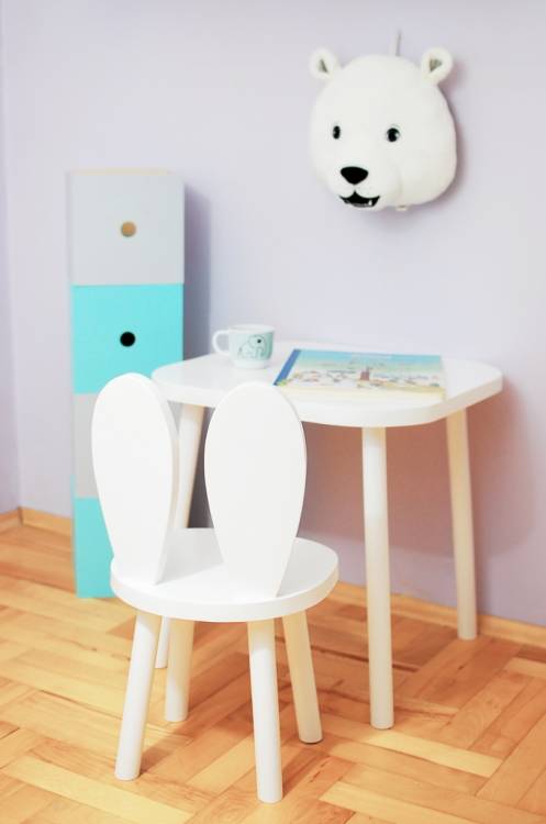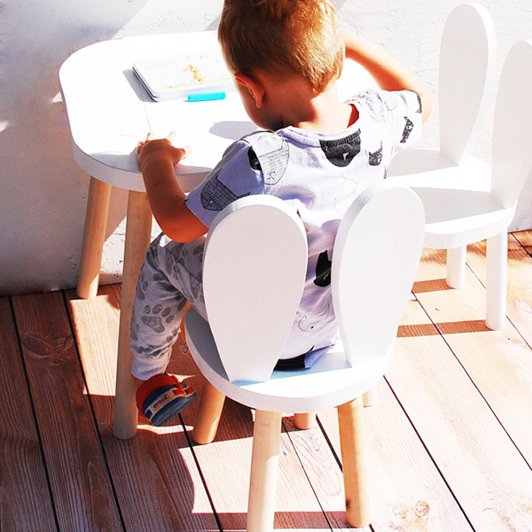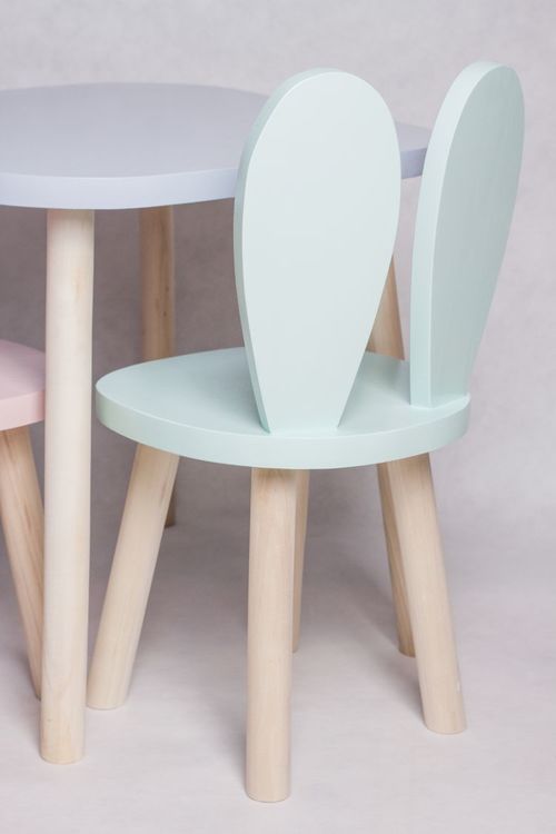 Ett excepionellt och mycket vackert möbelset innehållande en av våra fantastiska stolar med formen av en kanin samt ett vackert tillhörande bord.  Möblerna  ger en fantastisk charm till barnrummet, men fyller givetvis även ett praktiskt syfte. Stabila och starka konstruktioner som samtidigt är bekväma för barnet.