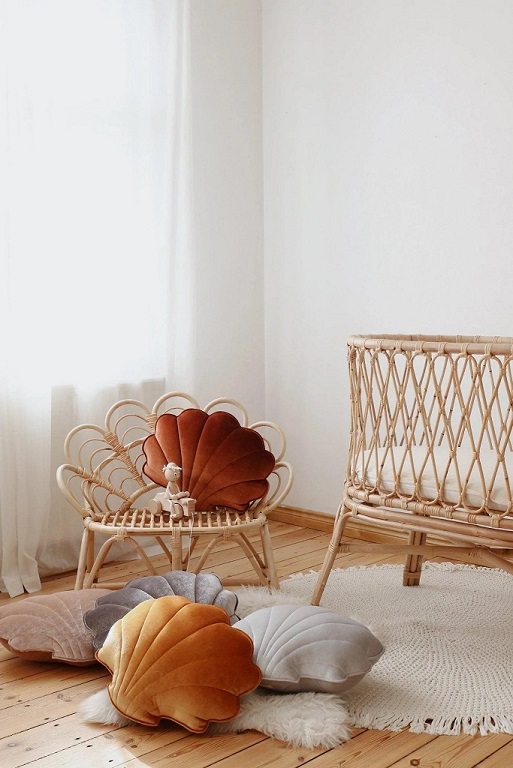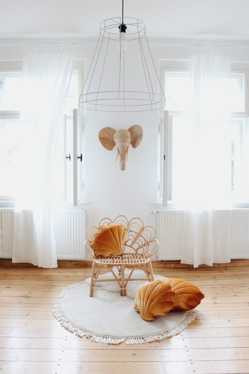 En underbart vacker och fin kudde i formen av en snäcka. En fantastisk skapelse gjord av en noga utvald och mycket mjuk sammet som kommer i olika pastellfärger. Det vackra utförandet är en sak, men de underbar materialvalen gör det även till en kramfavorit hos barnen. Om du bara ska köpa en inredningsprodukt till barnrummet, är denna den du ska köpa!