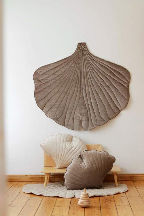 För de allra minsta erbjuder vi en underbar lekmatta i form av ett ginkgolöv. Lekmattan är dubbelsidig, mjuk, slitstark och fylld med tjockt isoleringsfoder. Varje enskild lekmatta är handgjord.