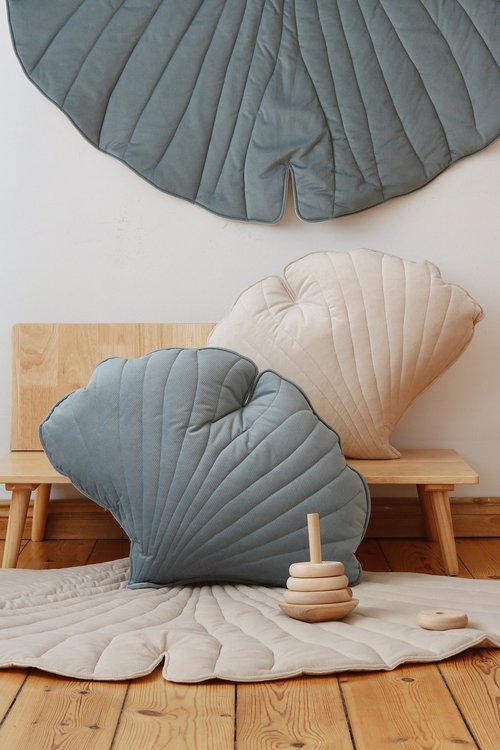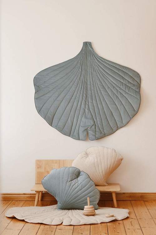 För de allra minsta erbjuder vi en underbar lekmatta i form av ett ginkgolöv. Lekmattan är dubbelsidig, mjuk, slitstark och fylld med tjockt isoleringsfoder. Varje enskild lekmatta är handgjord.