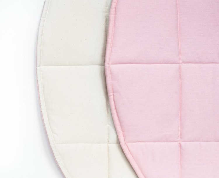 För de allra minsta erbjuder vi en underbar lekmatta som är mjuk, slitstark och fylld med tjockt isoleringsfoder. Mattan är dubbelsidig med en rosa och en beige sida. Varje enskild lekmatta är handgjord och tillverkad av OEKO TEX-certifierad bomull.
