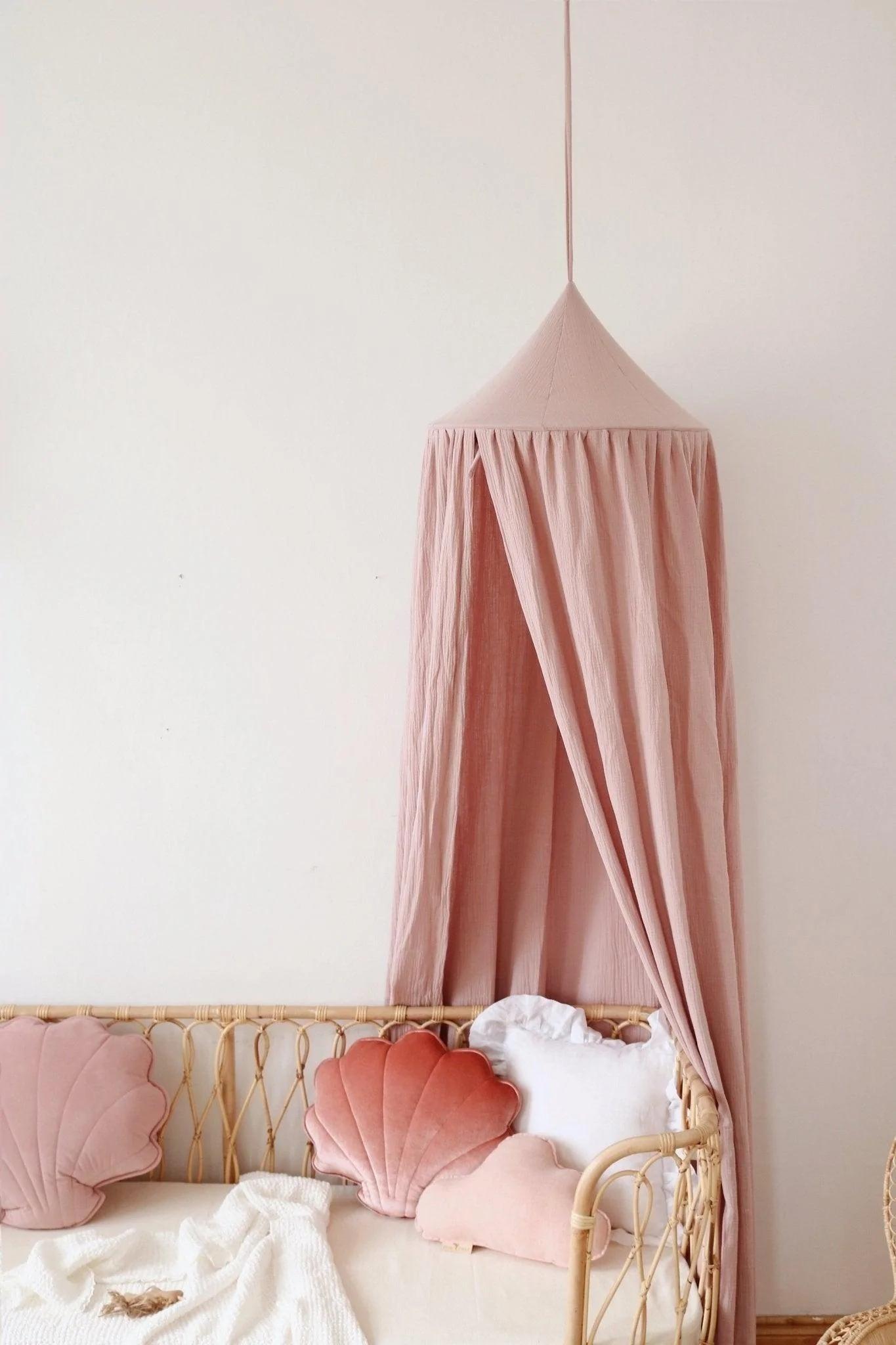 En mycket charmig och vacker sänghimmel tillverkad av högkvalitativt bomull. I varje rum som denna används kommer en sagokänsla att spridas. Perfekt för att inreda barnrummet på ett bra sätt. Sänghimmeln är dessutom förberedd med en praktisk anordning i mitten för att kunna hänga favoritsakerna.