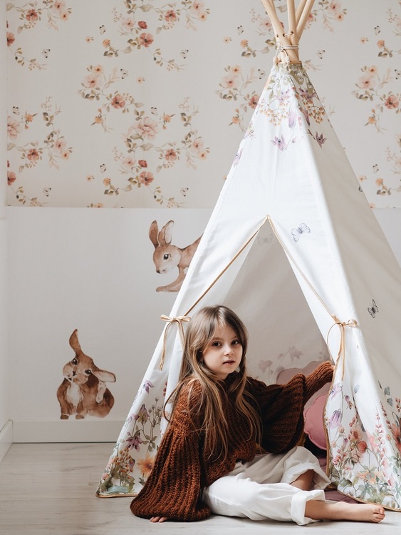 Ett tipitält utöver det vanliga, det är vad du får med detta fina lektält från Moi Mili. En klassisk och stilren form, men full av vackra detaljer som blir en vacker del av din barnrumsinredning.