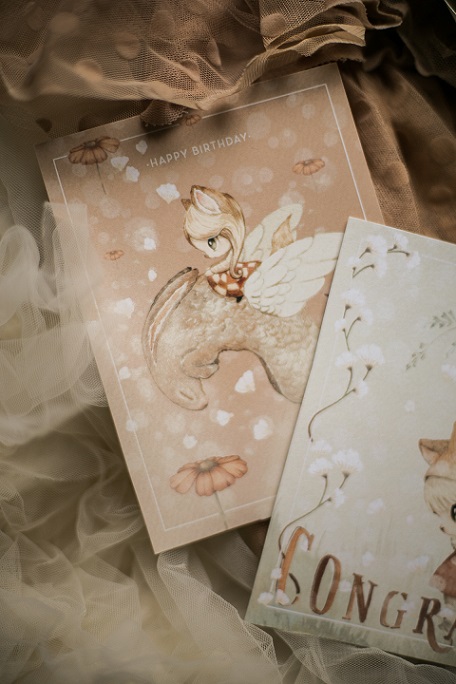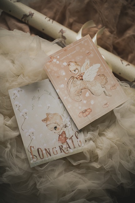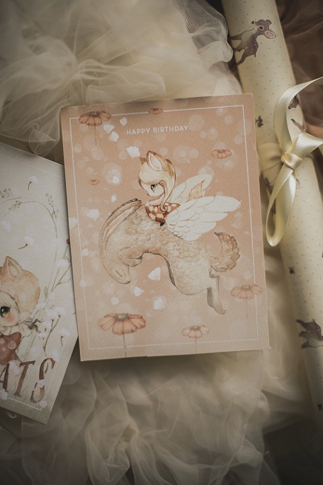 De dubbelsidiga födelsedagskorten har underbara motiv med en känsla av en akvarellillustration. På den ljusa baksidan finns det gott om plats att skriva ett hjärtligt meddelande.