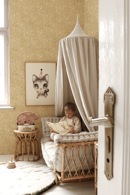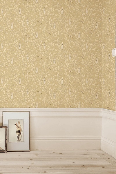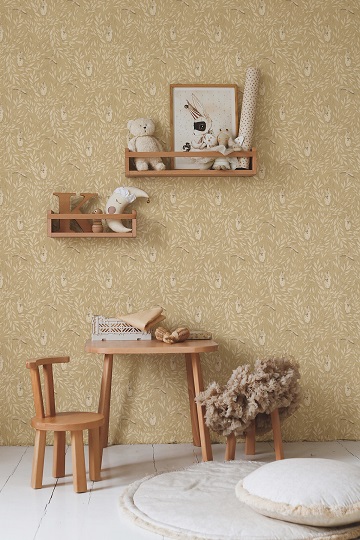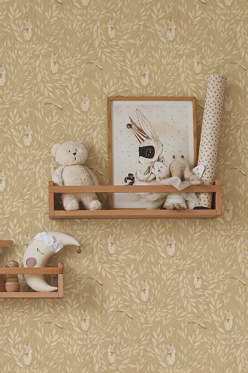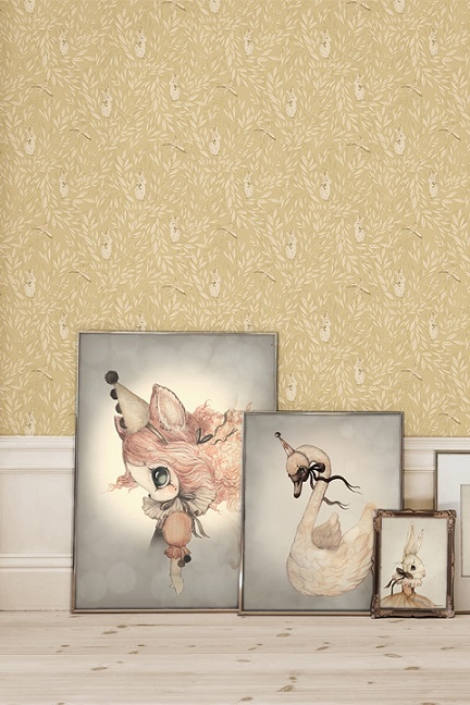 Mrs Mighetto, tapet Misty Leaf Fauna, Mustard