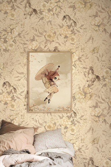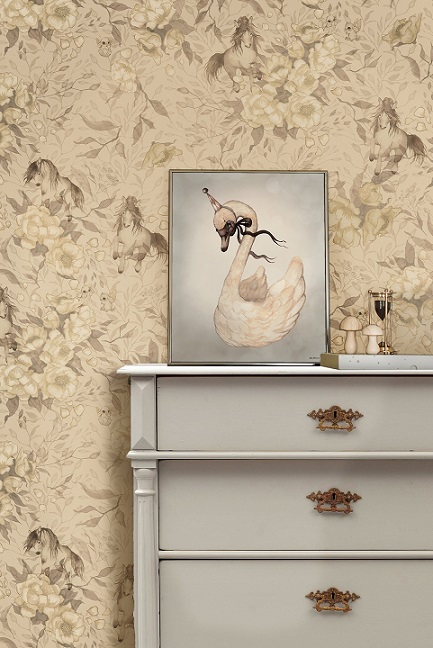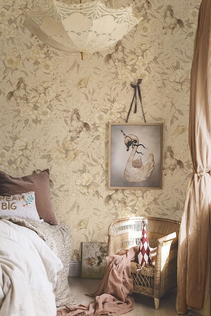 Mrs Mighetto, tapet Ponies for Hollie, Pale Yellow