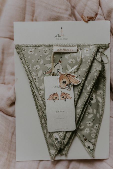 Superfin vimpel från svenska Mrs Mighetto!Slingan innehåller totalt 10 stycken dubbelsidiga vimplar av mjuk bomullsatin och är hela 3 meter lång. Denna vimpel passar i barnrummet, eller ute i lekstugan eller varför inte när det är dags för födelsedagsfest. Mått: Längd 3 m. Material: OEKO-TEX certifierad bomullsatin.Designer: Mrs Mighetto