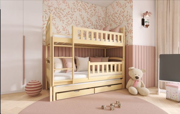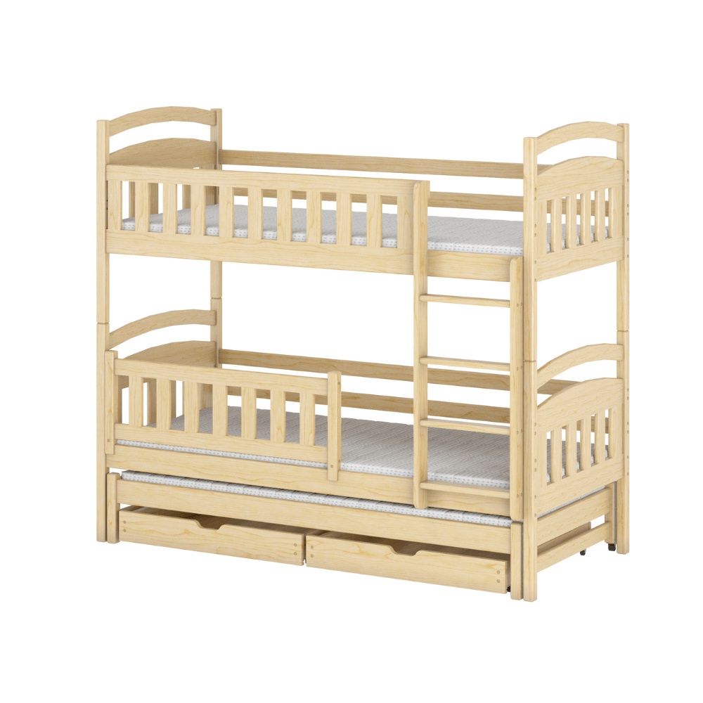 Natur våningssäng med tre sängar, Betty 90×200 cm