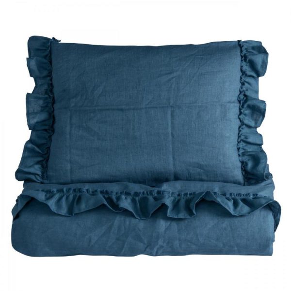 Ng Baby Påslakan av linne med VOLANG, Dusty Blue