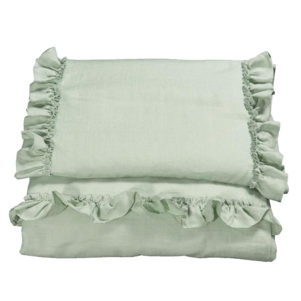 Ng Baby Påslakan av linne med VOLANG, Sage green