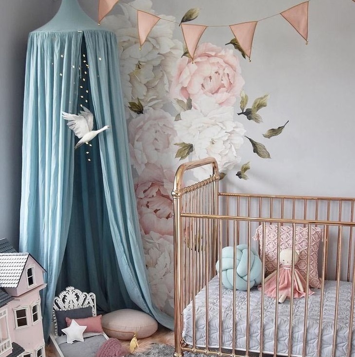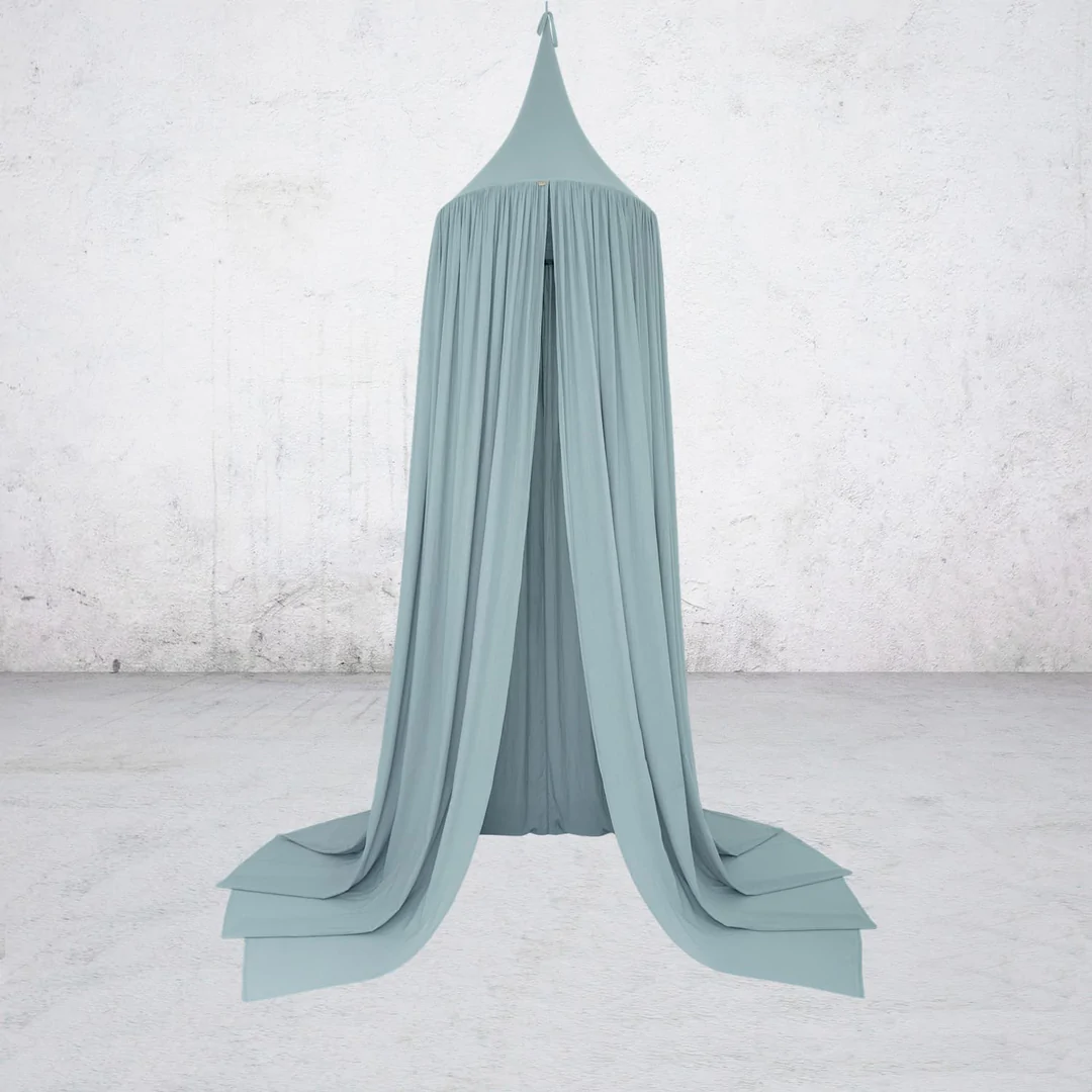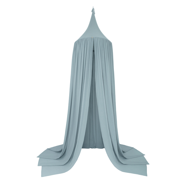 En mycket charmig och vacker sänghimmel i organisk bomull. I varje rum som denna används kommer en sagokänsla att spridas. Perfekt för att inreda barnrummet på ett bra sätt. För att montera sänghimmeln behöver man bara en liten krok som man fäster i taket och sen hänger upp sänghimmeln på den. Sänghimmelns struktur hålls på plats med en metallring som är avtagbar.