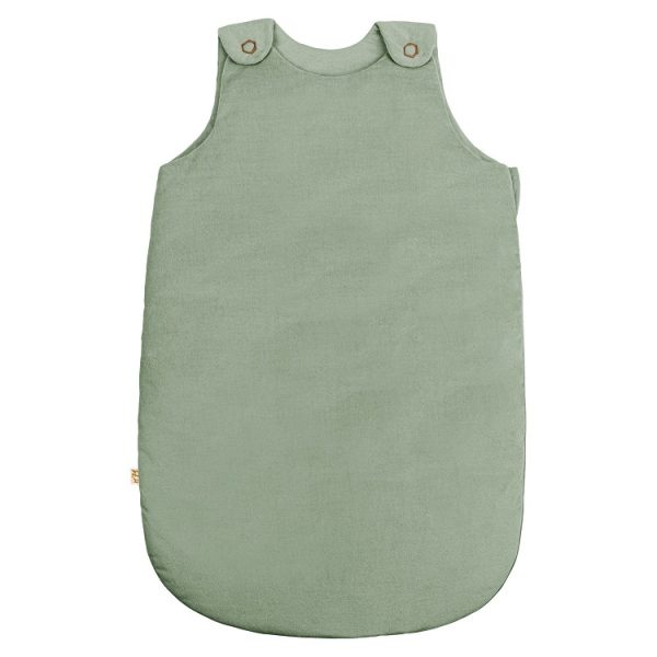 Sovpåsen knäpps över axlarna med två knappar. Den har också en praktisk, dold dragkedja på ena sidan så att du enkelt kan reglera värmen så ditt barn inte blir för varmt. Dessutom är sovpåsen ärmlös så att barnet inte känner sig instängt. Lämpligast för svala rum mellan 13 och 19 °C.