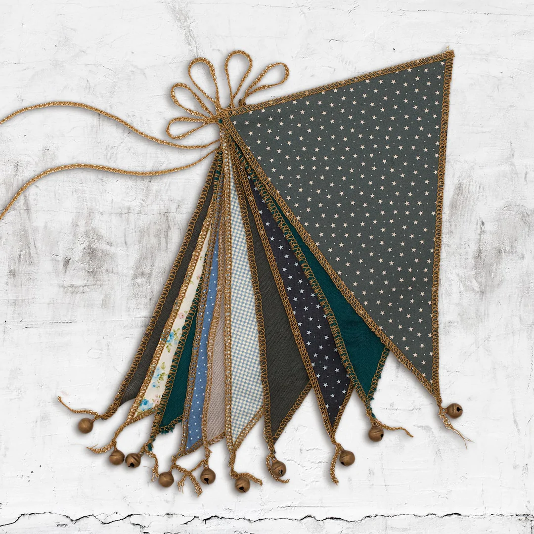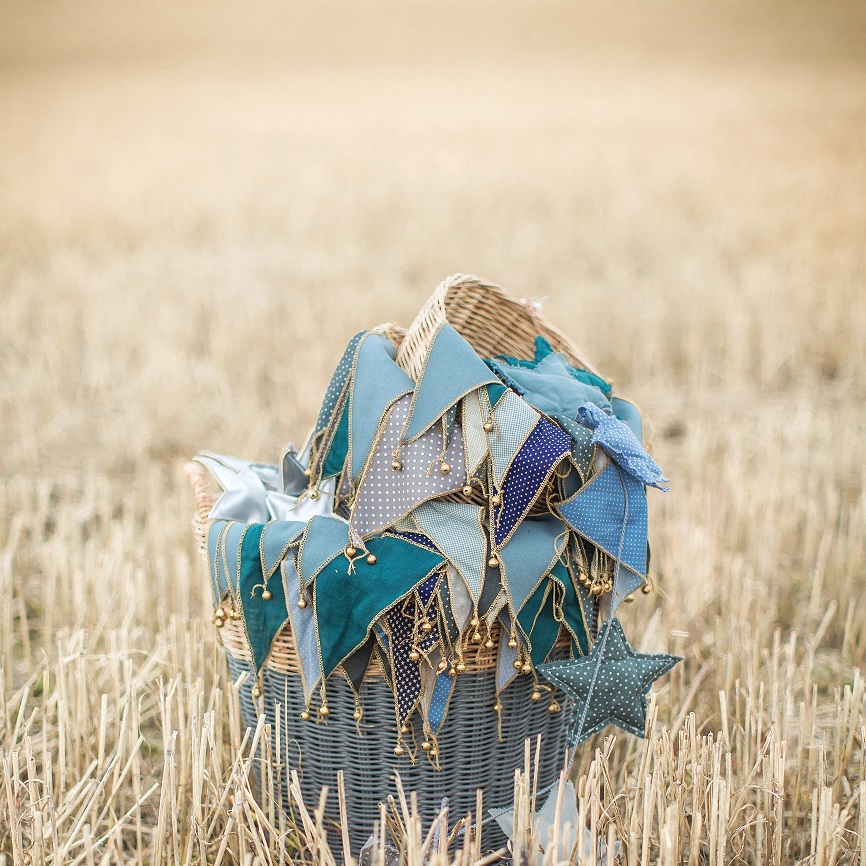 Denna vackra vimpelslinga med bedårande tygvimplar är den perfekta detaljen för din barnrumsinredning. Passar perfekt i barnrummet, eller ute i lekstugan eller varför inte när det är dags för födelsedagsfest.