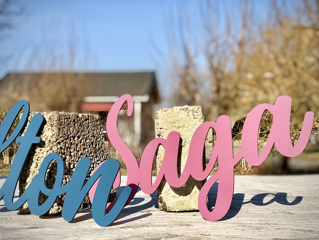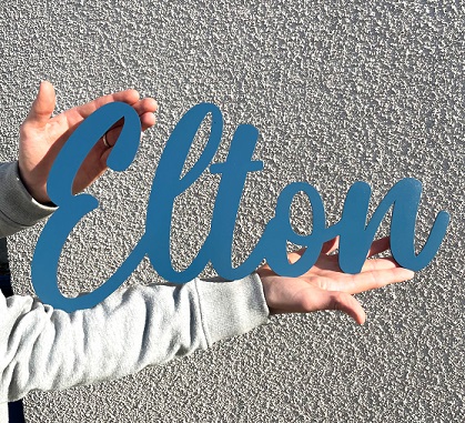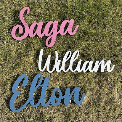 Mått: Storlek varierar beroende på namnets längd (alltid 28cm hög eller 47cm bred).