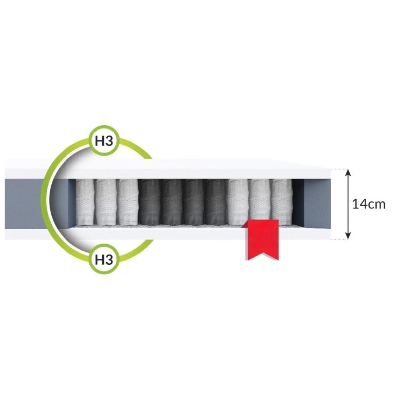 En bekväm madrass med multipocketfjädrar som passar till en barnsäng eller till en hussäng. Madrassen har ett avtagbart överdrag som gör att du enkelt kan tvätta den och hålla den fräsch.Madrassen är indelad in i 7 zoner med olika fasthet vid olika punkter. Pocketfjädrarna gör att madrassen formar sig efter kroppens form och vikt för korrekt ergonomiskt stöd. Runtom fjädrarna ligger…