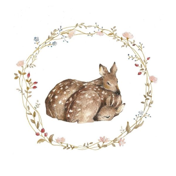 En underbart vacker poster för barnrummet med motiv av en fin rådjursfamilj. Med dessa posters kan du enklet skapa en unik känsla i din barnrumsinredning och ditt barn kommer att älska de sagoliknande motiven.Trycket är gjort på ett mycket högkvalitativt papper som dessutom är obestruket, vilket gör att bilden ser ut som den är handmålad.Mått: 30 x 30 cm