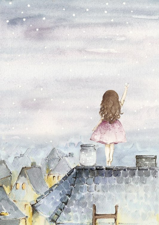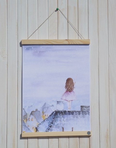 En underbart vacker poster för barnrummet med motiv av en flicka på taket. Med dessa posters kan du enkelt skapa en unik känsla i din barnrumsinredning och ditt barn kommer att älska de sagoliknande motiven.