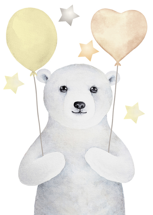 En underbar vacker poster till barnrummet med motiv av en söt björn. Med dessa posters kan du enkelt skapa en unik känsla i din barnrumsinredning och ditt barn kommer att älska de sagoliknande motiven.