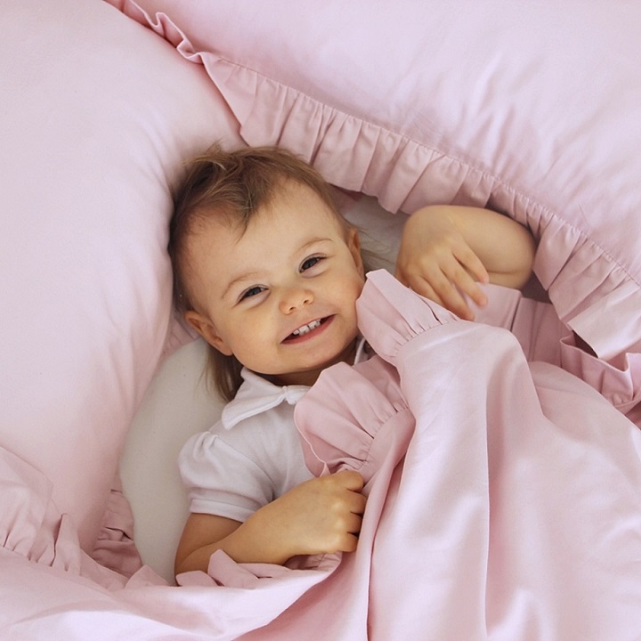 Överraskande vackra sängkläder av bomullssatin ger det bästa till ditt barn. Med vackra volanger på kanterna kommer det även att passa väl in i din barnrumsinredning.