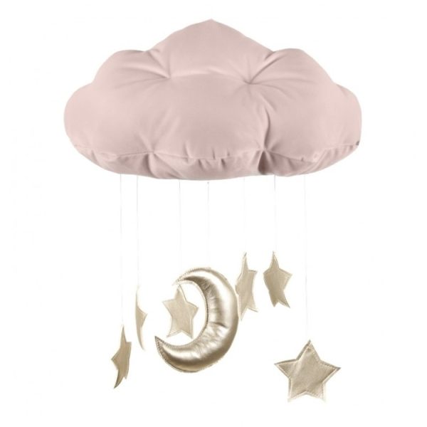 Puderrosa sängmobil moln med guldstjärnor, Cotton & Sweets