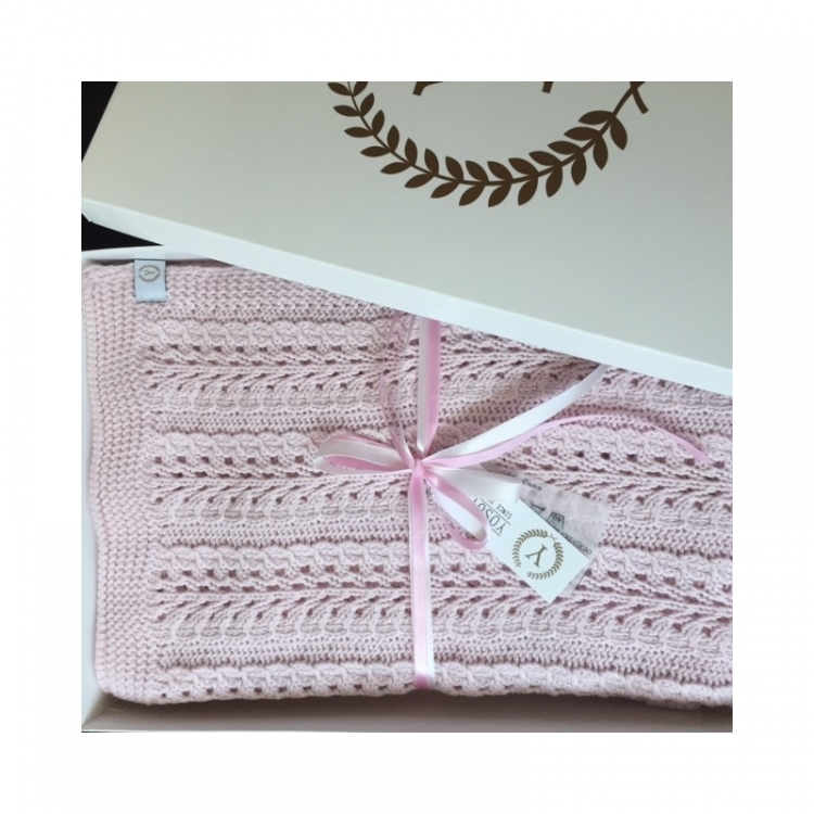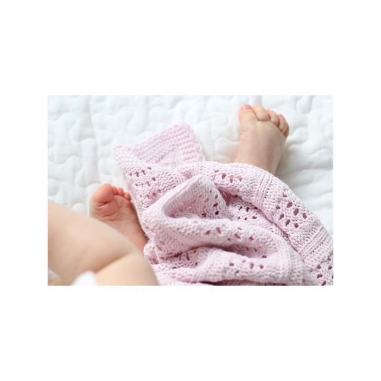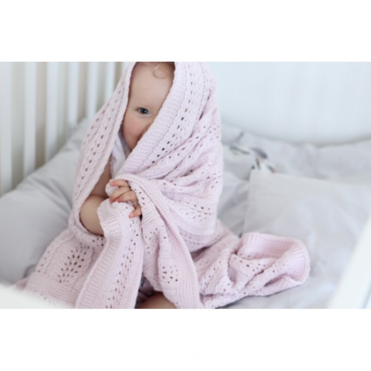 Rosa stickad barnfilt/pläd dreamy, YOSOY