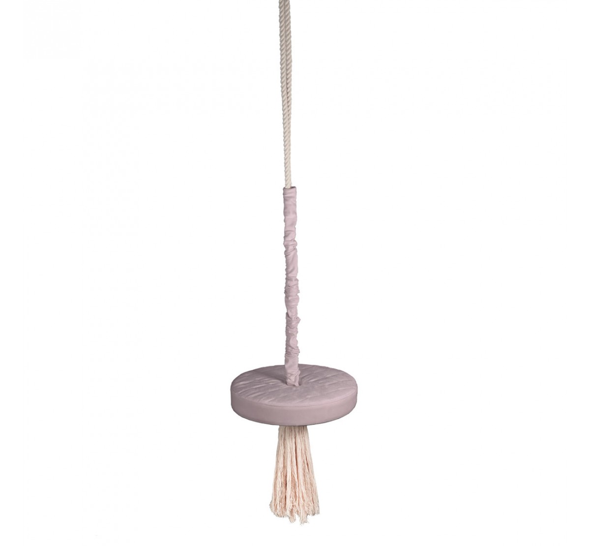 Gjord av tjockt tyg, med en vadderad mjuk rund madrass. Gungan är gjord i rejält material och i naturliga färger, så den är vacker men samtidigt bastant.