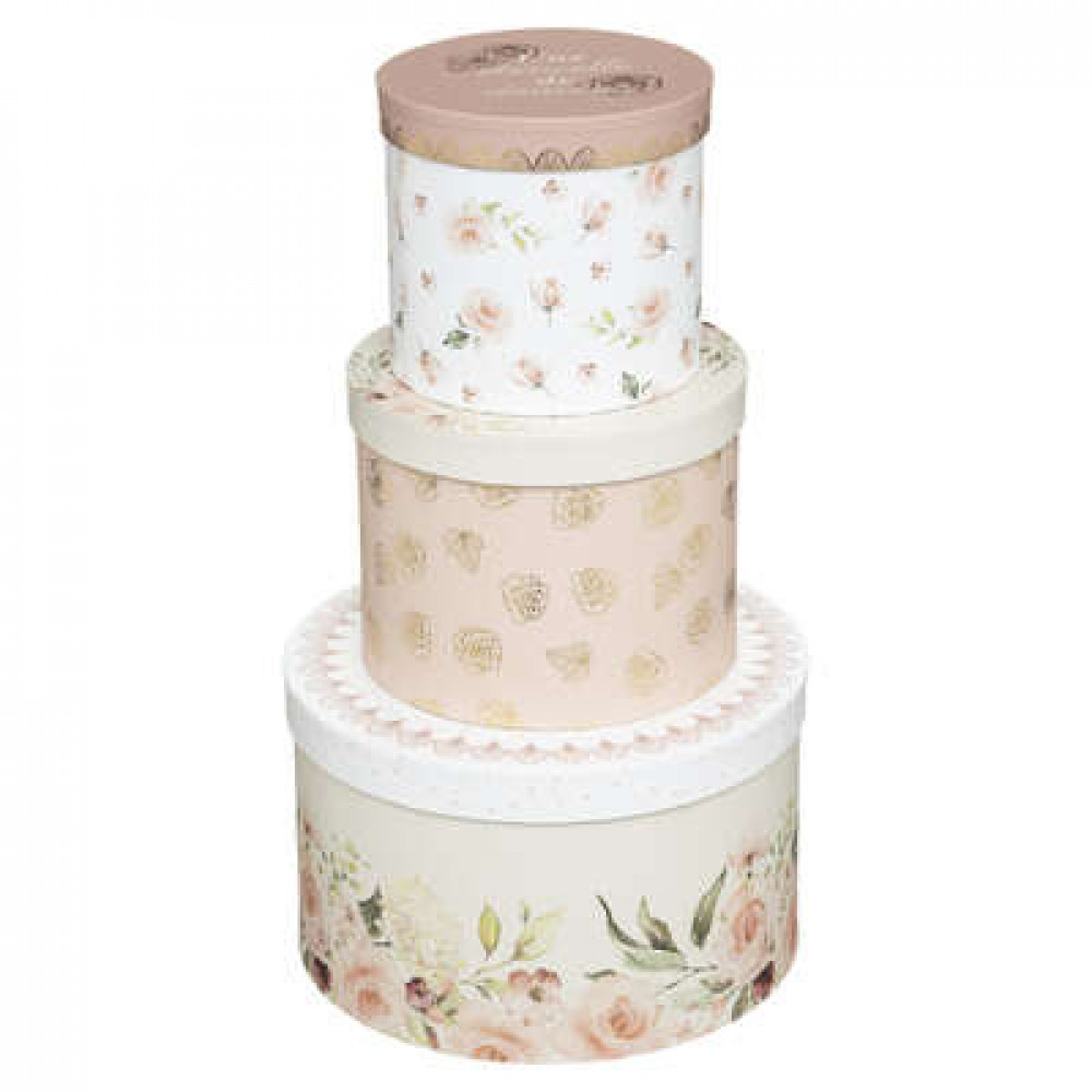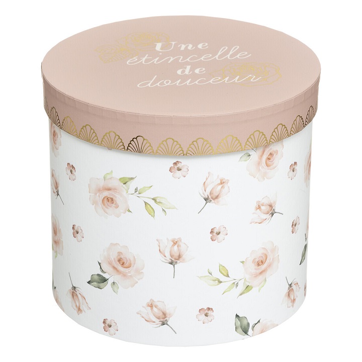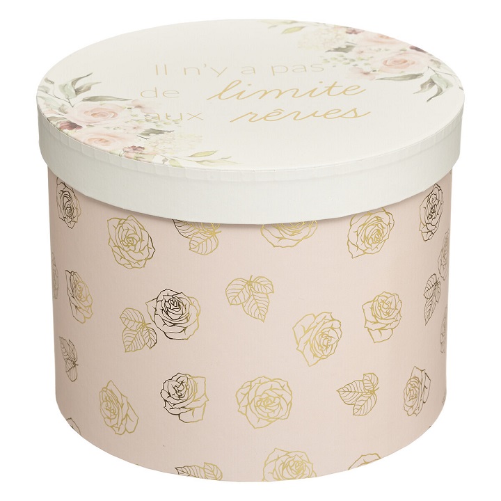 Underbara och fina praktiska runda förvaringslådor med motiv av rosor. Perfekta till att förvara ditt barns småsaker, som pennor eller samlarbilder. Förvaringslådorna är gjorda av papp. Kommer i ett fint set om tre koffertar. Mått: Stor: D25 x H15 cm. Mellan: D18.5 x H14.5 cm. Liten: D15 x H13.5 cm.Material: Papp.