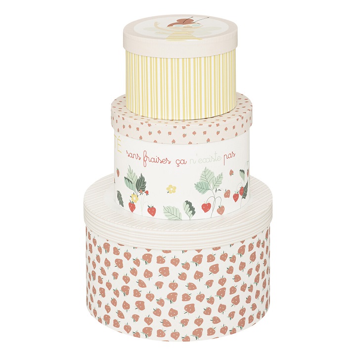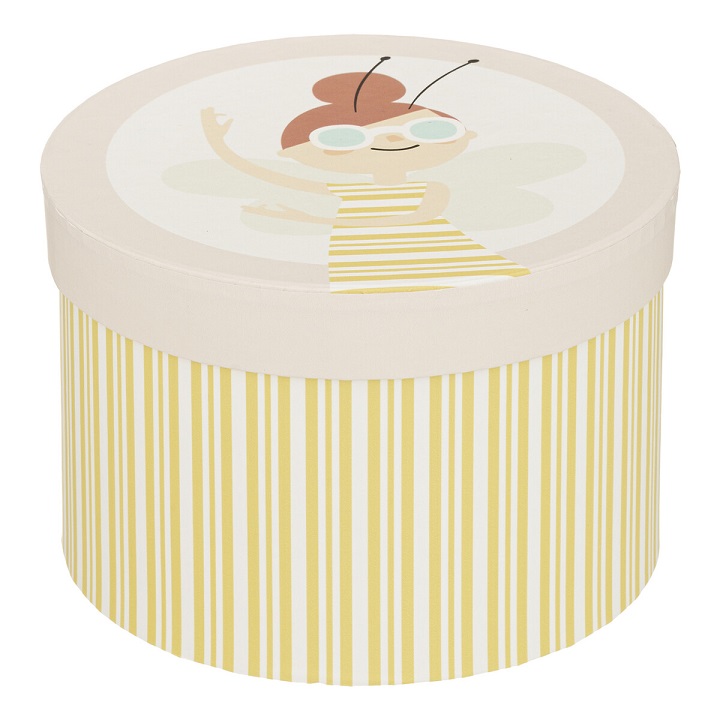 Underbara, färgglada och runda förvaringslådor till barnrummet! Perfekta till att förvara ditt barns småsaker, som pennor eller samlarbilder. Förvaringslådorna är gjorda av papp. Kommer i ett fint set om tre boxar. Mått: Stor: D25 x H15 cm. Mellan: D18.5 x H12.5 cm. Liten: D15 x H10 cm.Material: Papp.