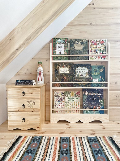 Denna underbara möbel med rustik charm kommer att lyfta din barnrumsinredning till himmelska höjder. Bokhyllan har 3 hyllor som rymmer ett stort antal böcker och gosedjur.