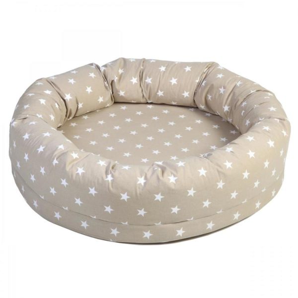 Material: Yttertyg: 80 % bomull / 20 % polyester | Fyllning: Botten av komprimerad fibervadd. Innehållet av 100 % polyester består till största delen av återvunna PET-flaskor. Ytterring av styrolitkulor (EPS) EPS betyder expanderande polystyren