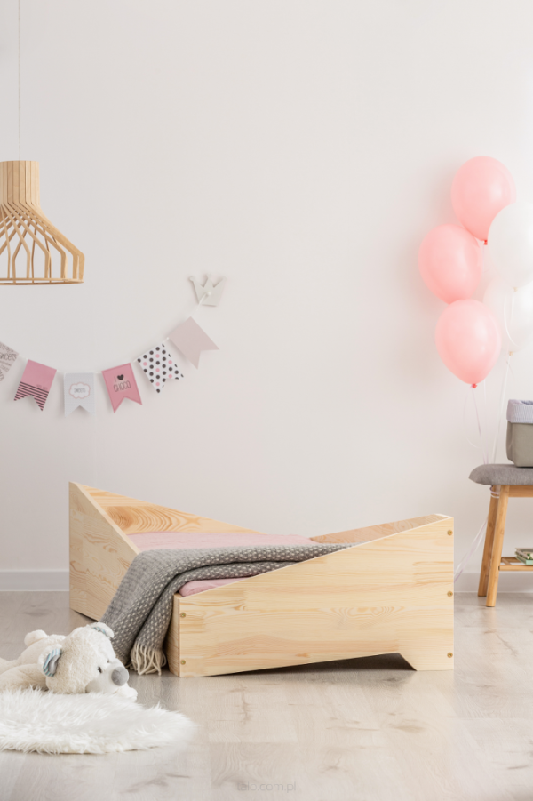 En coolt designad säng med sluttande sidor och gavlar. En helt unik barnsäng som du kan göra ännu mer unik genom att måla den i önskad färg eller dekorera tillsammans med fina vimplar eller andra detaljer.