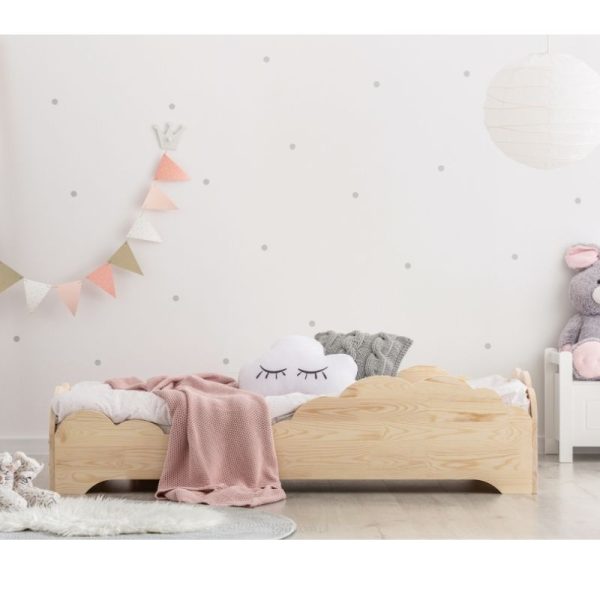 Superfin barnsäng i vackert naturträ. Vill du skapa din egna unika säng, då du kan måla den i exakt de färger som du själv önskar. Designad med större moln på en sidorna, som ett skydd för barnet och där man kliver upp i sängen mer mot mitten.