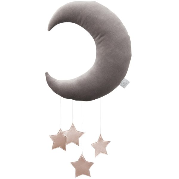 Sängmobil grå måne med rosa stjärnor, Cotton & Sweets