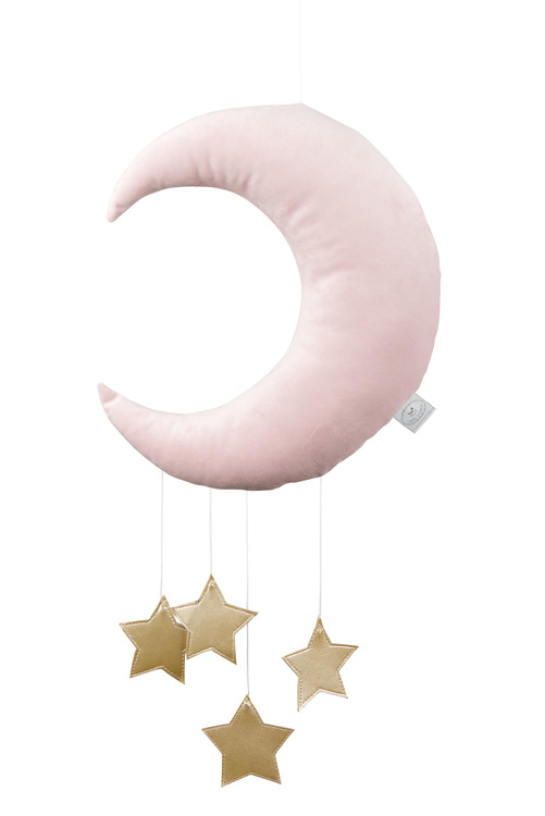 Sängmobil puderrosa måne med guld stjärnor, Cotton & Sweets