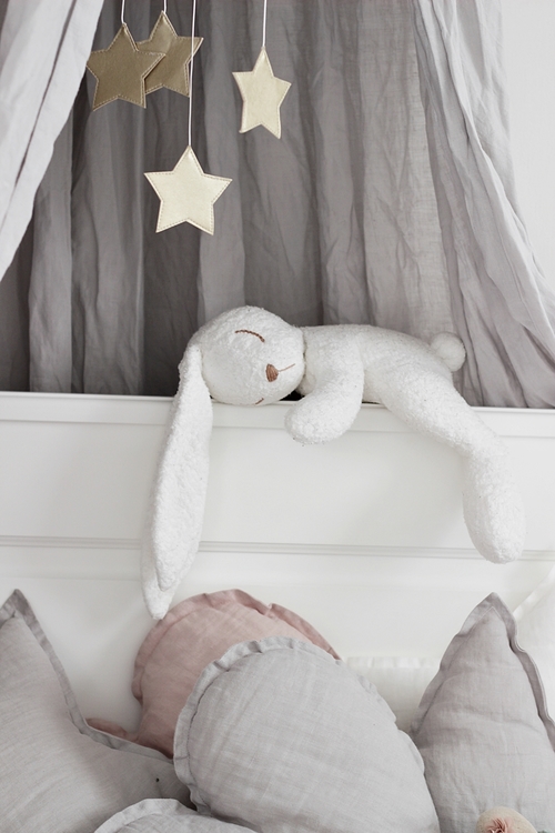 En fantastisk fin detalj för barnrummet, sydda av mjuk bomullssammet med skimrande stjärnor. Charmig i sin enkelhet och idealisk för barnrumsinredningen. Finns i färgerna puderrosa, vit, mint och grå.