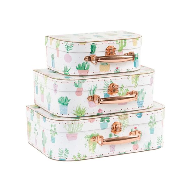 Sass & Belle, förvaringslådor koffert pastel cactus, 3-pack