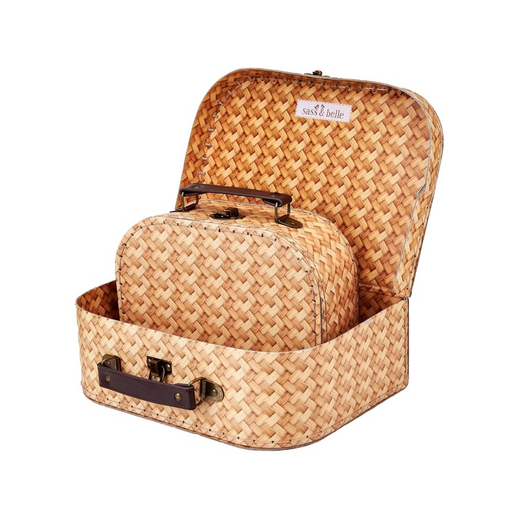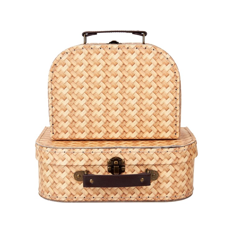 Sass & Belle, förvaringslådor koffert rattan print, 2-set