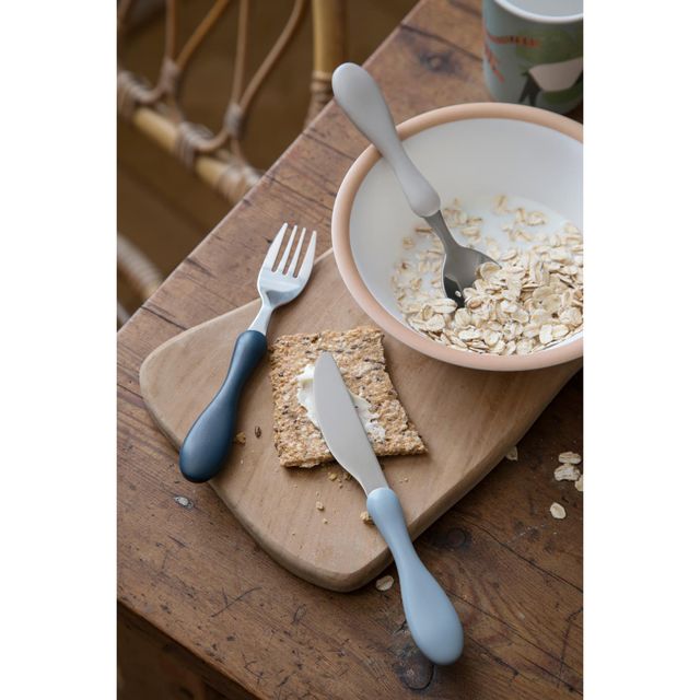 Ett mycket gulligt och praktiskt set som består av en kniv, en sked och en gaffel för små händer med stora ambitioner. Material: Rostfritt stål, handtag i plast.Storlek: 14,5 cmTvättråd: Tål maskindisk.Designer: Sebra