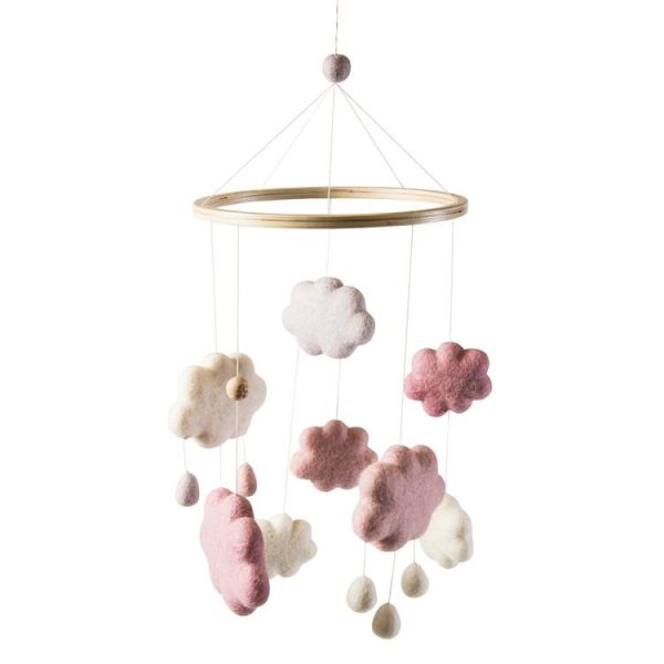 En fantastisk fin och helt handgjord sängmobil för de allra minsta i hemmet. Skapa din egna och unika miljö i barnrummet med hjälp av de små mjuka molnen som tillsammans med regndropparna flyter långsamt i luften.