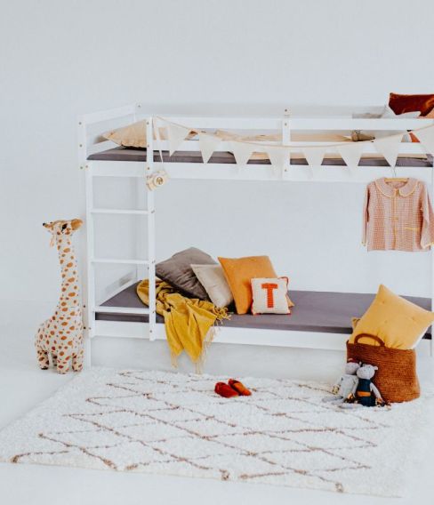 Sängen är säkerhetstestad och tillverkad av massivt bokträ. Den är målad helt i färger som är miljö- och hälsovänliga.
