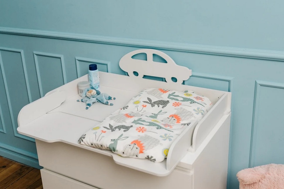Fantastiskt skötbord som enkelt viks och omvandlas till en hylla när blöjperioden är över! Praktiskt och snyggt när det är som bäst!Skötbordet är rymligt så att du enkelt kan få plats med en skötbädd, blöjor, babykräm och annat som du behöver.Info: Välj mellan tre olika motiv: klassisk, stork och bil. Passar de flesta byråer.Miljövänlig produkt.Mått :Bredd: 79 cmDjup som skötbord: 61…