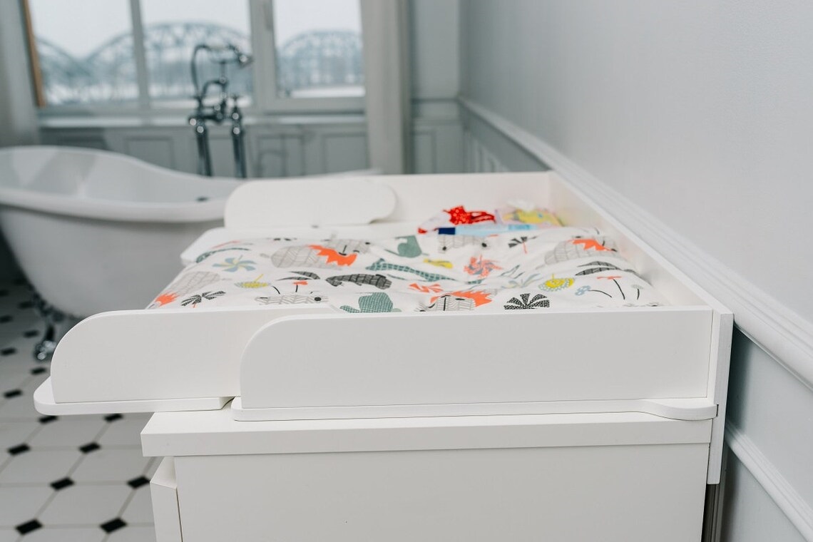 Skötbordet är rymligt så att du enkelt kan få plats med en skötbädd, blöjor, babykräm och annat som du behöver.