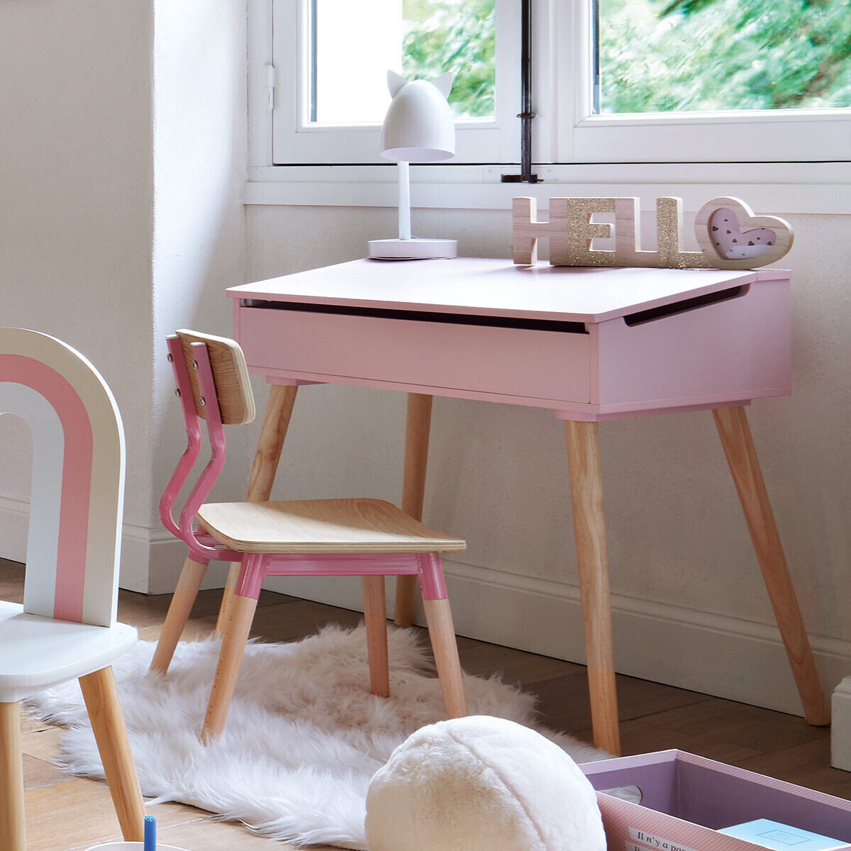 Skrivbord med förvaring, rosa