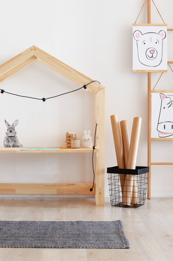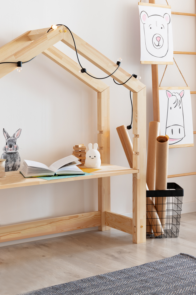 Ett underbart skrivbord av hög kvalitet, med en känsla av ett litet hus. Med största omsorg och känsla för detaljer, har detta fina skrivbord till barnrummet skapats, allt för att ge dig en unik kombination av hemkänsla och praktikaliteter. Ditt barn kommer älska att göra något kreativt vid detta fina skrivbord och även hemläxorna kommer kännas roligare att utföra. Du kan enkelt dekorera skrivbordet med hjälp av ljusslingor eller vimplar, och barnmöbeln blir en naturlig centralpunkt i rummet.