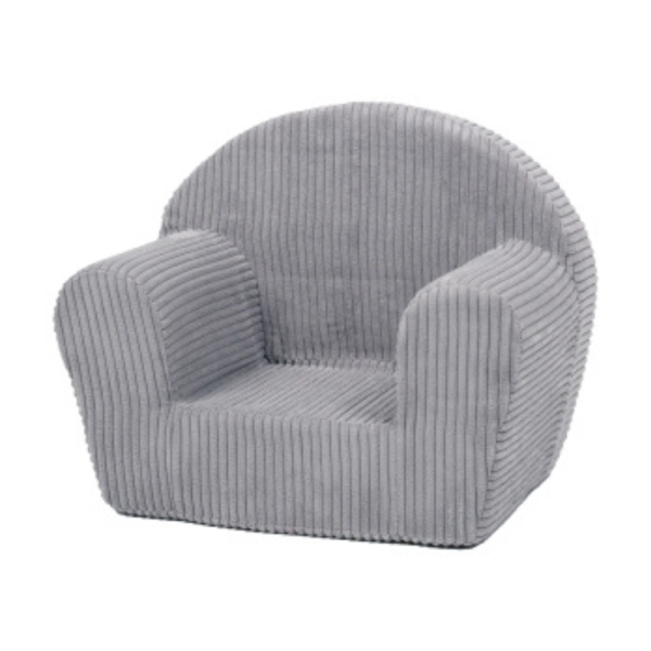 Denna charmiga barnfåtölj är en perfekt liten sittplats för de yngre i familjen. Med sitt mjuka, randiga tyg och bekväma design erbjuder den både stil och komfort. Stolen har en rund ryggstöd och breda armstöd som ger ett omfamnande stöd. Den är tillverkad i ett slitstarkt material och har följande mått: